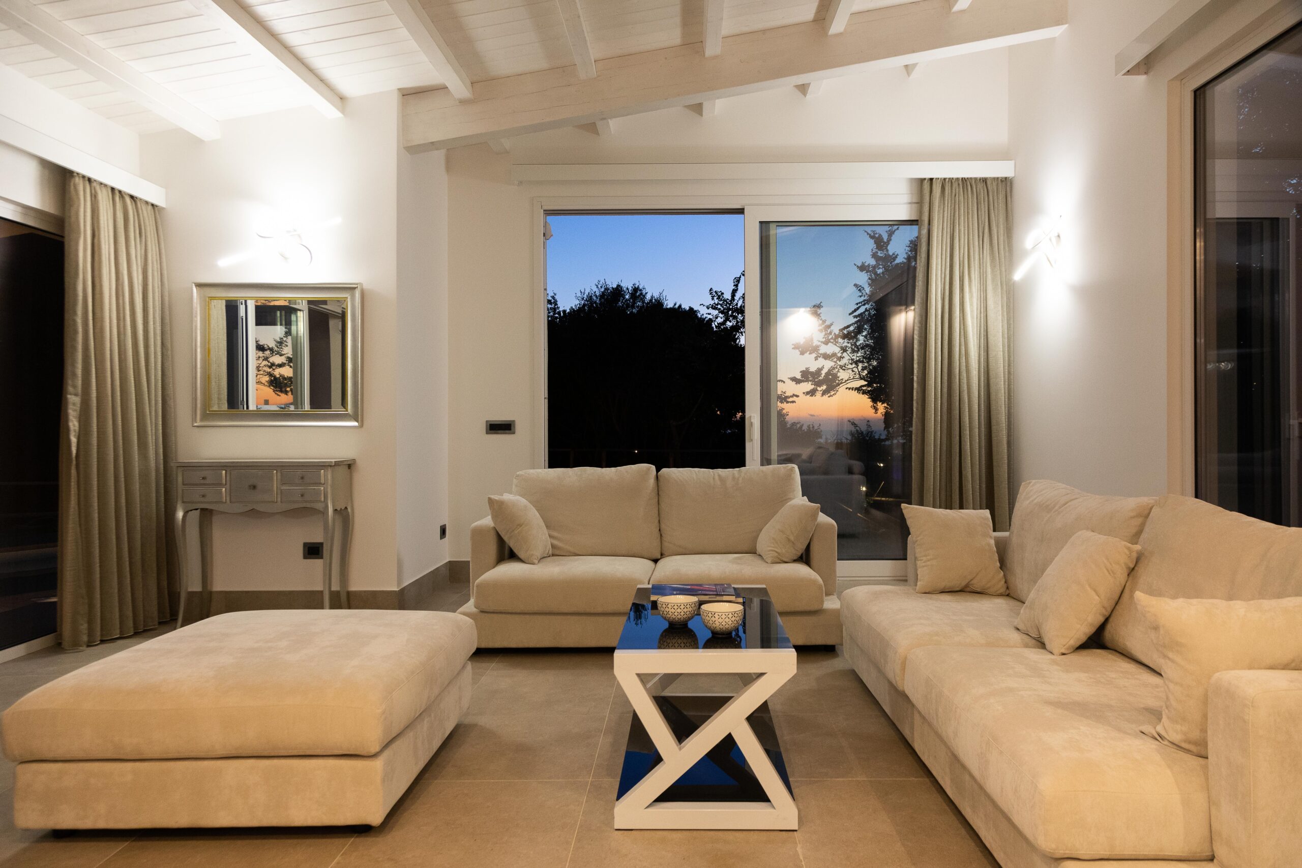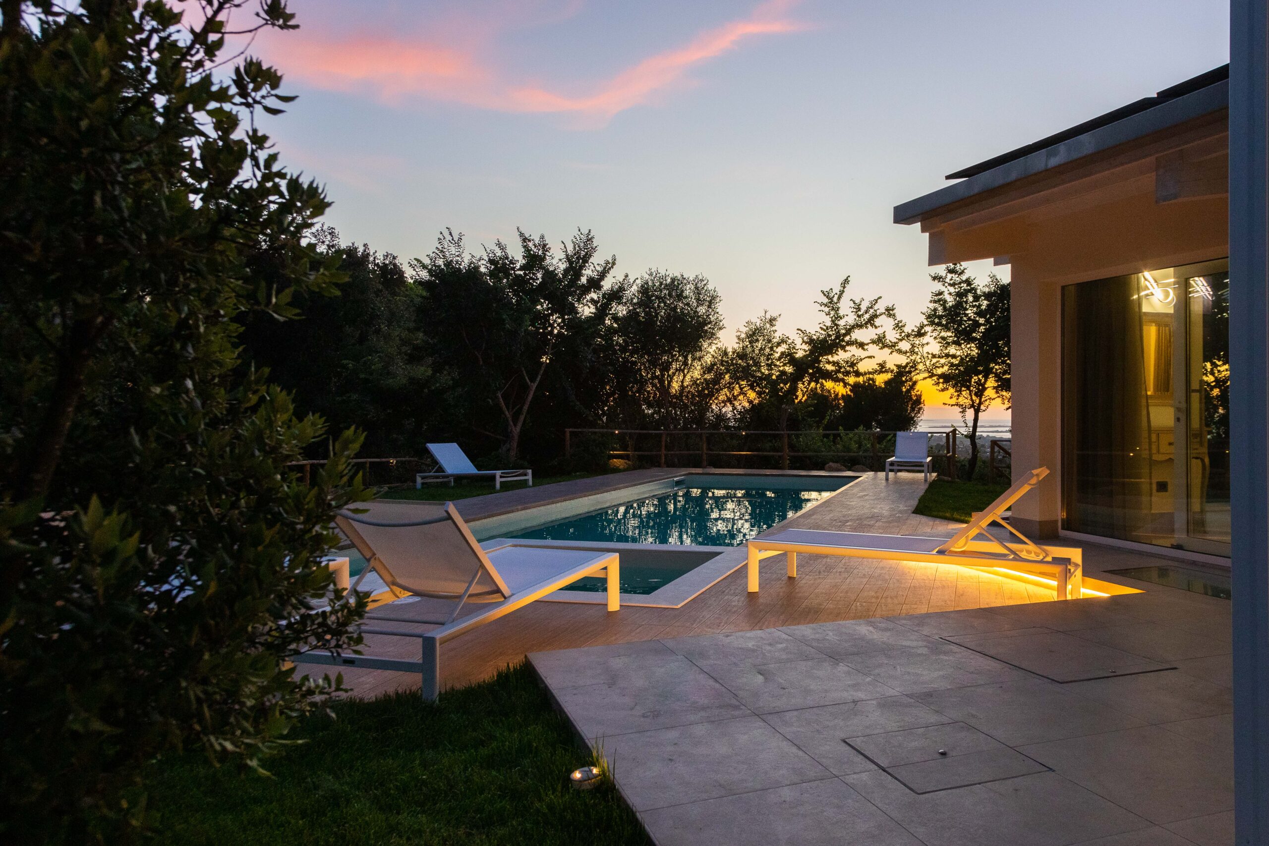 The rooms on the lower floor have access to the very nice terrace, furnished with comfortable outdoor furniture which allows to enjoy stunning sunsets and panoramic views over the Egadi Islands. On the secondary terrace there is a living area furnished with table and chairs for pleasant aperitifs at sunset. From the rooms of the upper level you can access the pool area and the lawn using the large French doors of the living area. The beautiful swimming pool is surrounded by the lawn on which modern and comfortable furnishings lie. This villa also guarantees all the privacy you need.